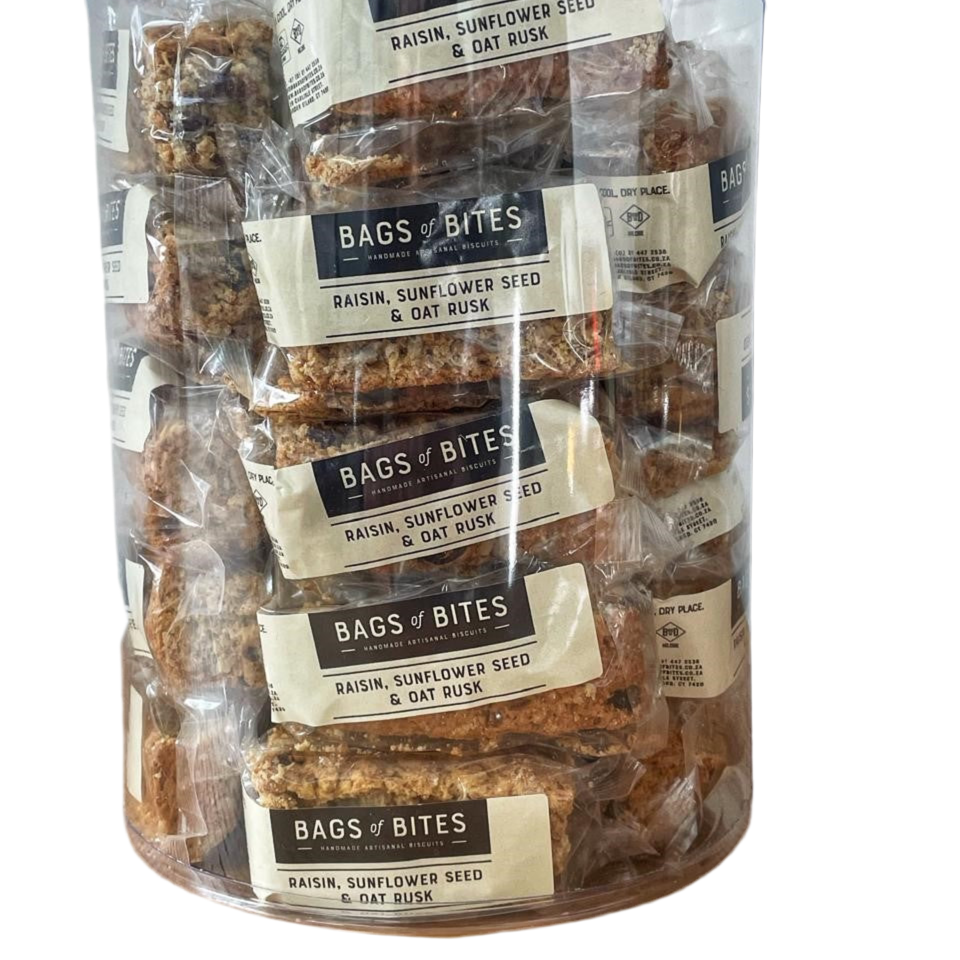 So, grab a hot cup of tea or coffee, find your cozy spot, and dive into the blissful world of our rusks. With every delightful crunch, you'll fall head over heels in love with the sensational taste that awaits you. Get ready to make your mornings, snack breaks, and tea times an absolute treat with Bags of Bites rusks!