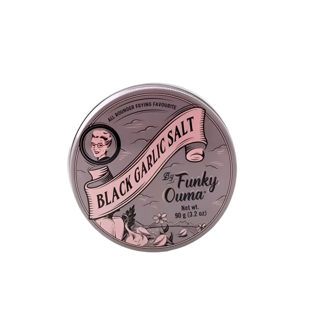 Add the alluring flavour of Funky Ouma 90g Black Garlic Salt Tin to your food. Crafted for culinary excellence, it’s gluten-free, allergen-free, and free from preservatives and MSG. In every pinch, embrace sustainability and natural flavours.